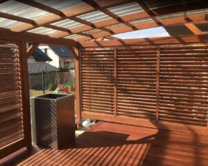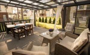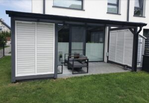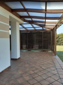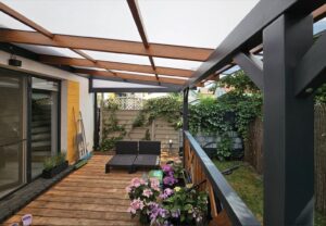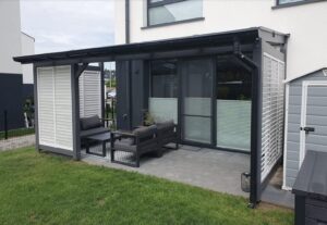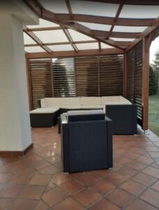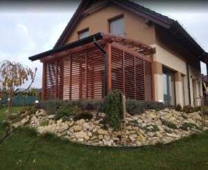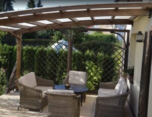 Wybudowanie pięknego oraz w pełni funkcjonalnego domu nie jest łatwe. Podobnie jest z tarasem oraz jego zadaszeniem. Często bywa tak, że mamy swoją wizję, która niestety nie jest tożsama z wizją projektanta. Czym jest taras? Jakie zadaszenie wybrać? I na co zwrócić uwagę, projektując zadaszenia tarasu? Na te i na inne pytania znajdziesz odpowiedź w naszym dziale METAMORFOZY. Najważniejsze podczas projektowania tarasu i jego zadaszenia jest uświadomienie sobie, czym tak naprawę jest sam taras. Pewnie każdy z nas widzi, że jest to dodatkowa powierzchnia pozioma. Jednak nie zawsze tras może znajdować się na parterze i być jego przedłużeniem. Obecnie często projektowane są tarasy na piętrach bądź dachach budynków. Podejmując decyzje budowy tarasu, lepiej zagospodarować powierzchnię powyżej 10 m2. Dlaczego? Dlatego że, tarasy znajdują się przeważnie od strony południowo-wschodniej oraz zachodniej. Właśnie na takich tarasach można ustawić meble wypoczynkowe lub stół z krzesłami. Wykonując projekt zadaszenia tarasu, należy wziąć pod uwagę jego umiejscowienie oraz to, jak ma on wyglądać po realizacji projektu daszku nad tarasem. Pergola tarasowa powinna być dostosowana do naszych potrzeb. Przykładem projektu zadaszenia tarasu wartego uwagi jest daszek osadzony na drewnianej konstrukcji, wypełniony płytami z poliwęglanu, które przepuszczają promienie słoneczne, chroniąc przy tym całą przestrzeń tarasu i meble ogrodowe.