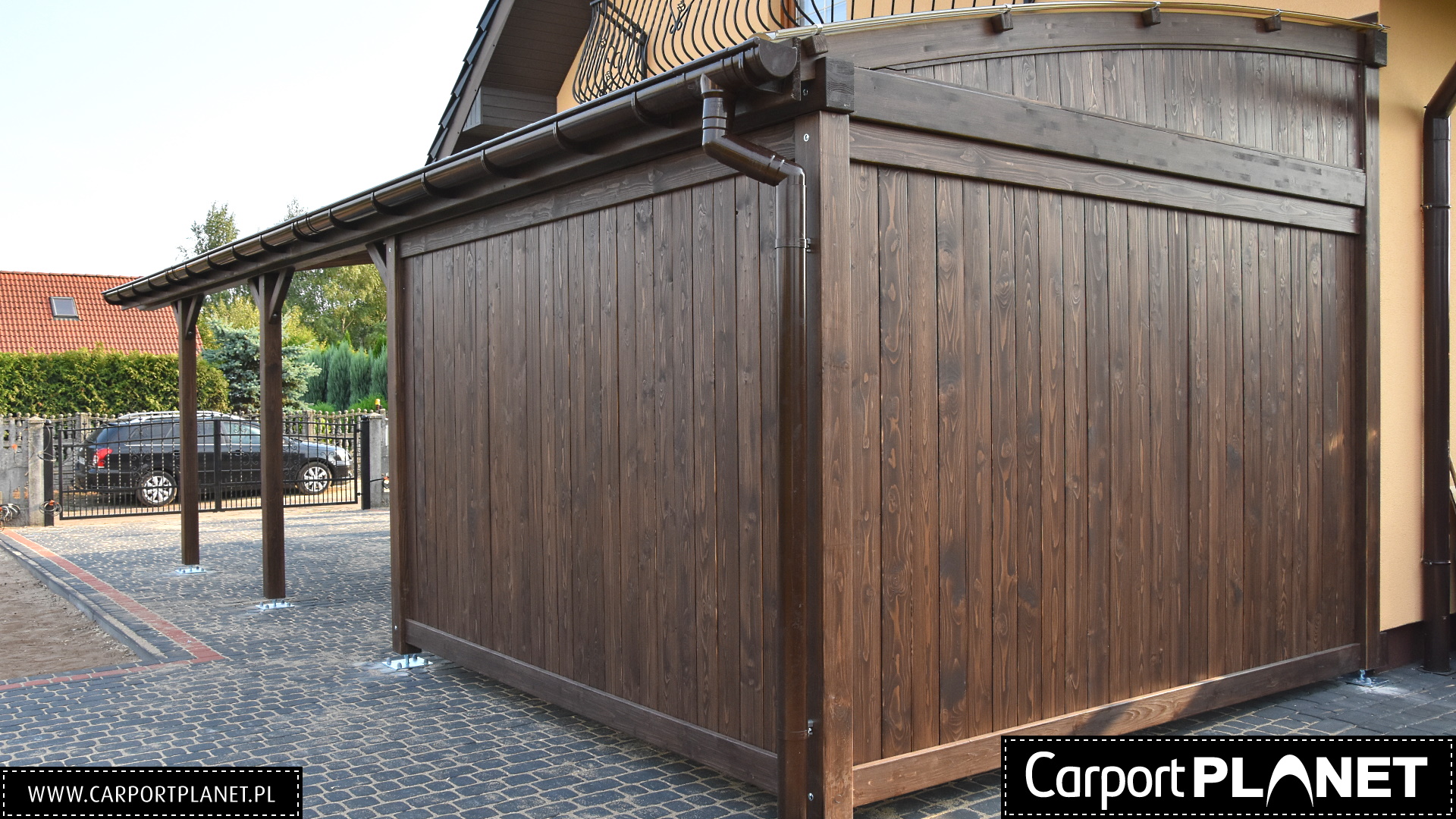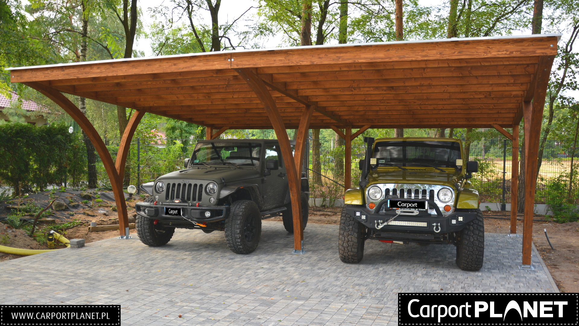 Zadaszenie zaprojektowane zostało zgodnie z najnowszymi normami na obciążenie śniegiem i wiatrem. Podstawowe przekroje elementów konstrukcji: element nośny 15x12cm, słupki tylne 12x12cm, łata górna 12x6cm, elementy łukowe 14x12cm. Wiatę garażową możemy wykonać na dowolny wymiar.