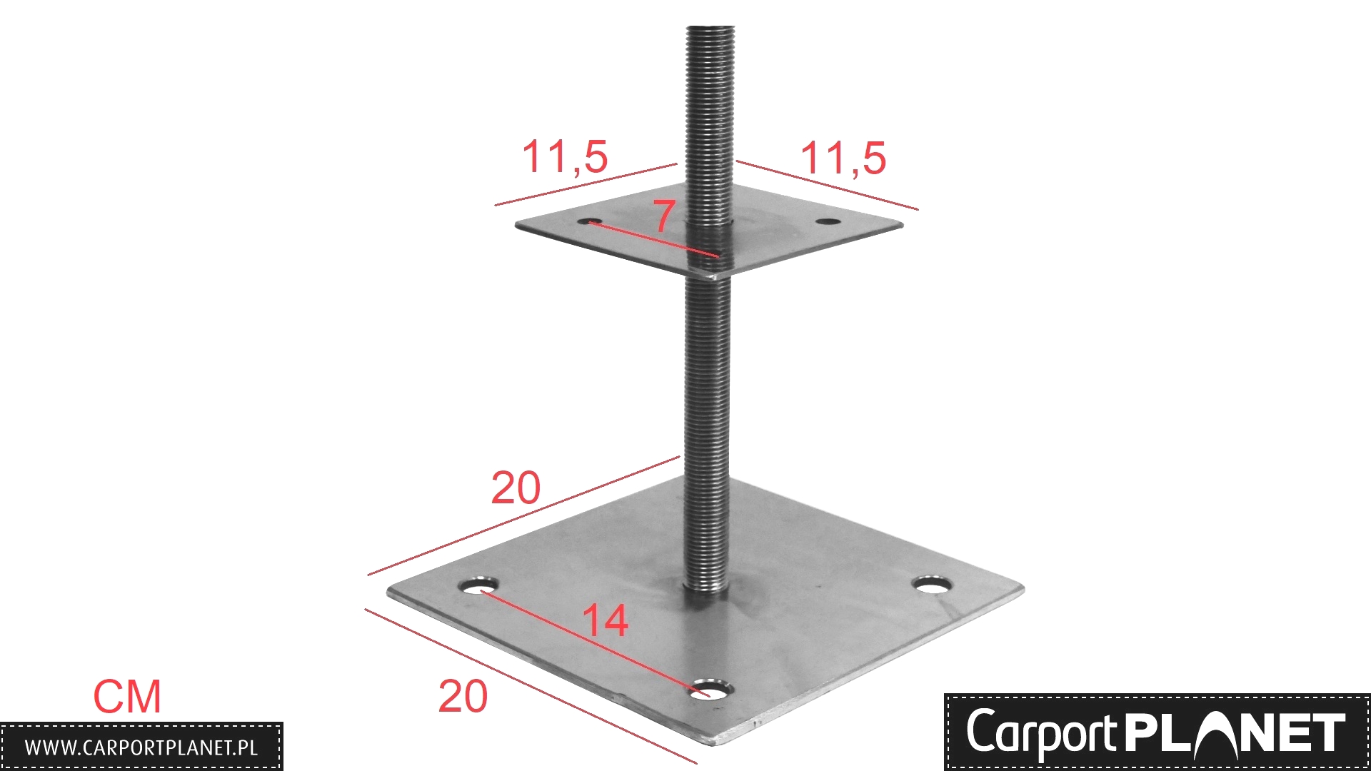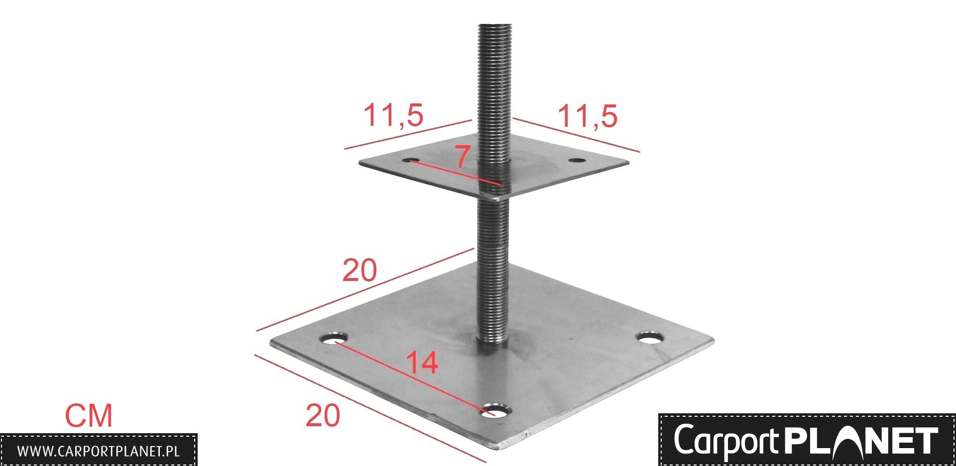 Wymiary podstawy regulowanej, grubość blachy ze stali nierdzewnwj klasa A2 4 mm