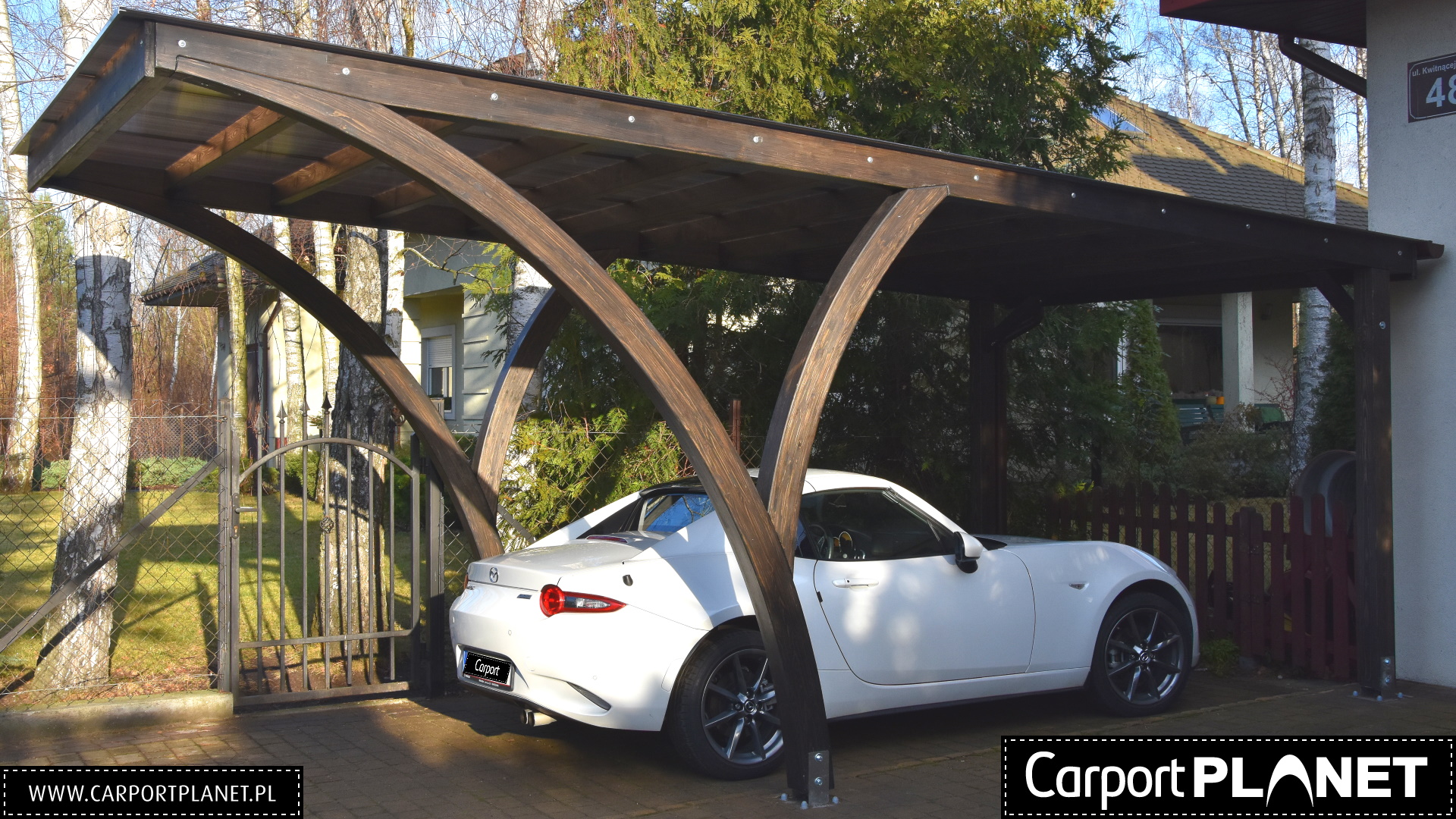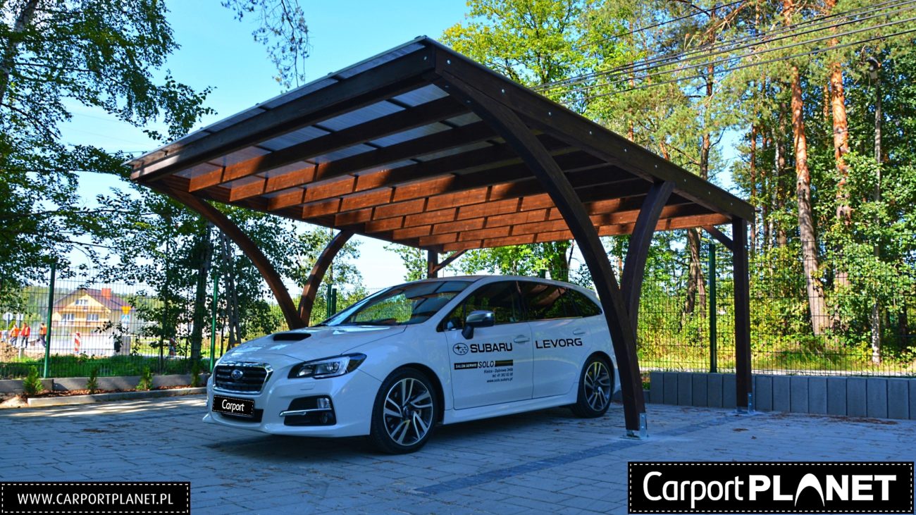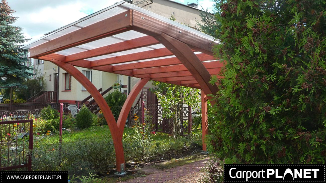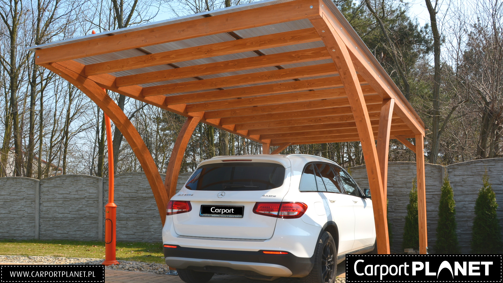 Zadaszenie zaprojektowane zostało zgodnie z najnowszymi normami na obciążenie śniegiem i wiatrem. Podstawowe przekroje elementów konstrukcji: element nośny 15x12cm, słupki tylne 12x12cm, łata górna 12x6cm, elementy łukowe 14x12cm. Wiatę garażową możemy wykonać na dowolny wymiar.