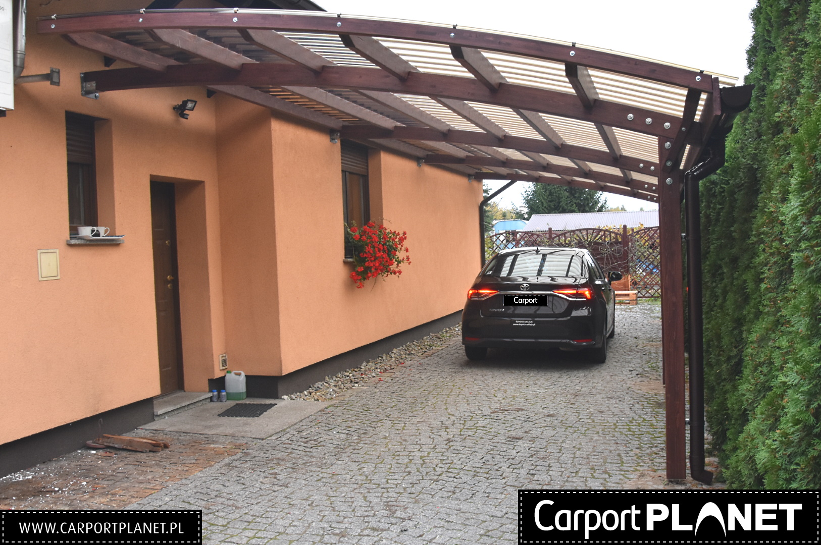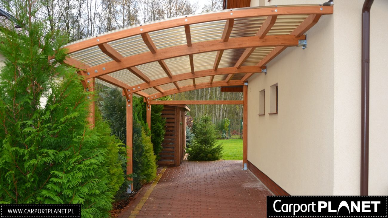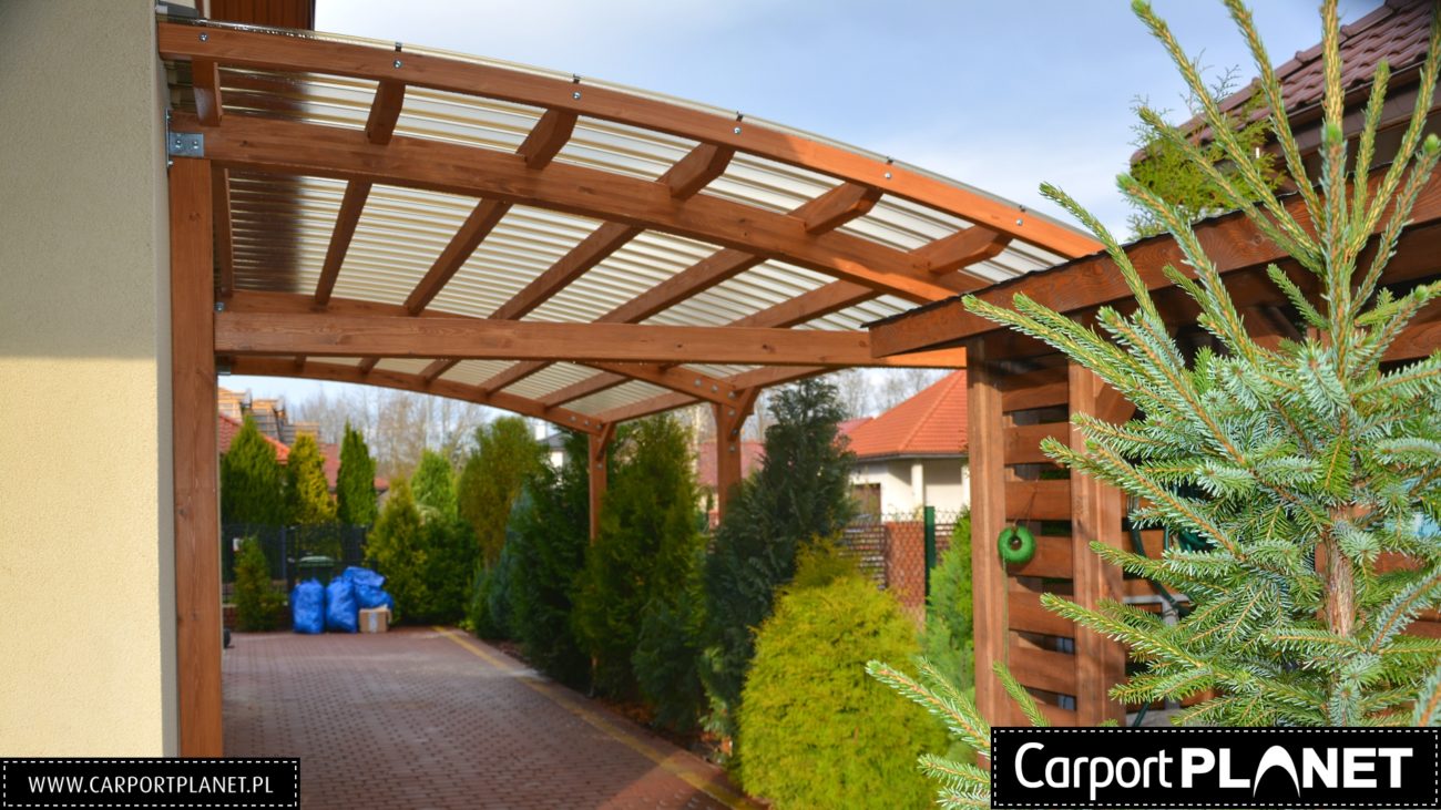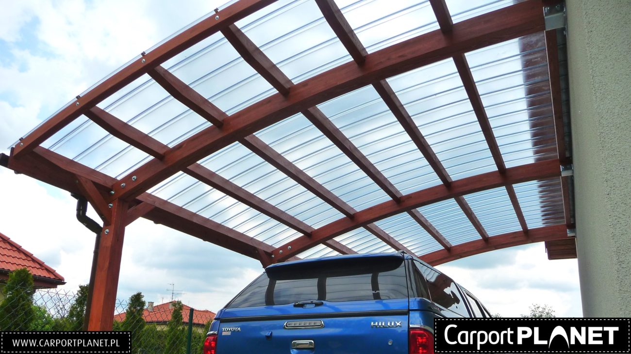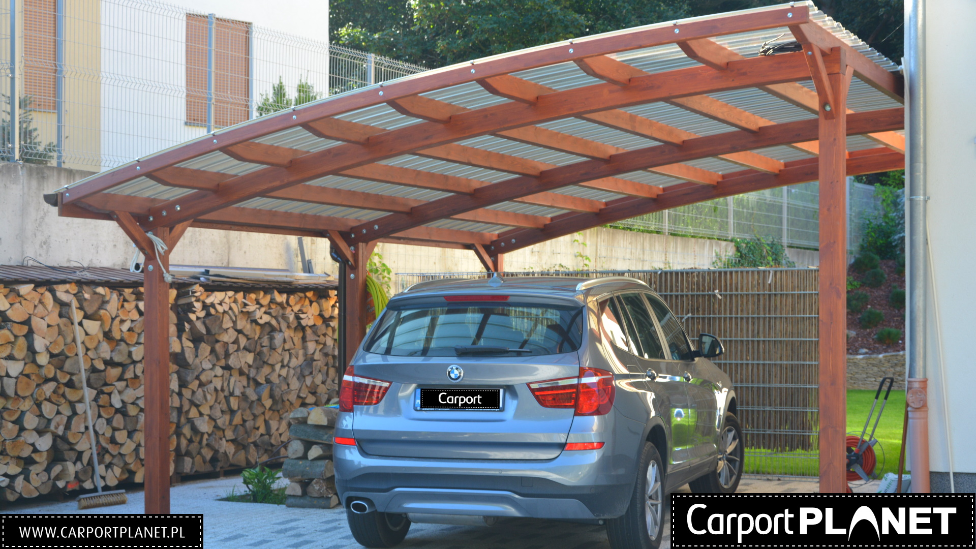 Zadaszenie zaprojektowane zostało zgodnie z najnowszymi normami na obciążenie śniegiem i wiatrem. Podstawowe przekroje elementów konstrukcji: element nośny 14x12cm, słupki 12x12cm, łata górna 12x6cm. Wiatę garażową możemy wykonać na dowolny wymiar.