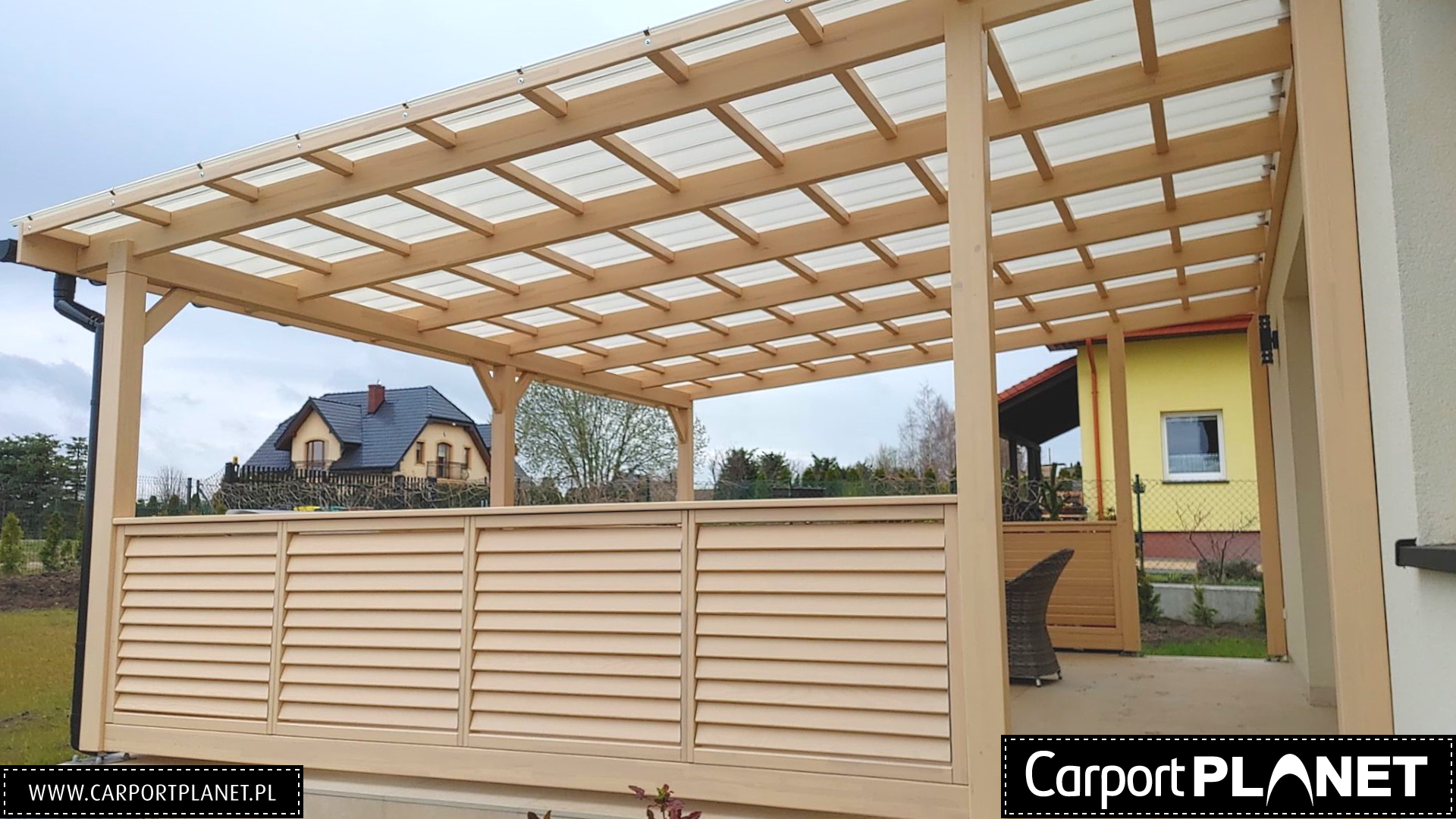 Orynnowanie PVC BRYZA przy zadaszeniu tarasu